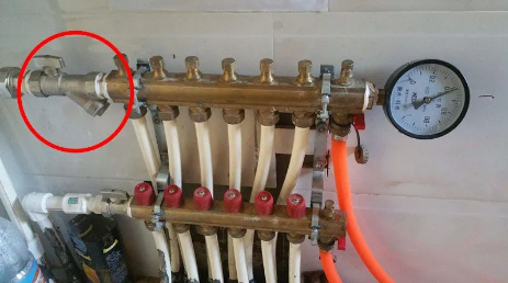 不同地區的暖氣水水質不同,暖氣水水溫不同,暖氣管道的老化程度不同,暖氣水壓不同,管道堵塞的速度自然也不同。一般來說,更建議每年做一次簡單的濾網清理:在地暖分水器的旁邊,或者樓道的管井里,可以看到一個斜向下的金屬接頭,如下圖▼