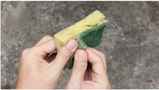 使用一塊日常洗碗的海綿就可以解決問題。